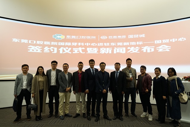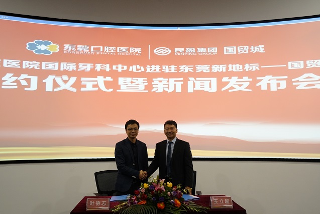 (特约通讯员/杨君君)12月15日,东莞口腔医院国际牙科中心在民盈·国贸城项目营销中心举办签约仪式,这标志着东莞口腔医院国际牙科中心正式进驻东莞新地标——民盈·国贸城。东莞口腔医院院长王立超博士、副院长袁东辉教授、民盈商业经营管理有限公司副总经理赵永臣、运营管理中心总监叶德志及媒体代表、嘉宾代表等共约50人出席签约仪式。