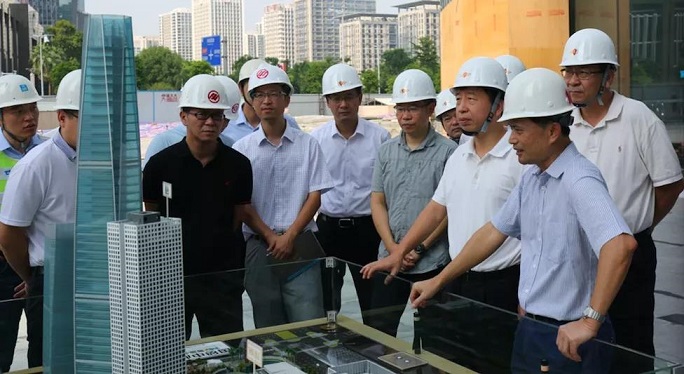 市长肖亚非一行抵达民盈·国贸中心之后,通过听取汇报和实地走访,详细了解民盈·国贸中心项目、规划设计、目前进展以及招商等情况。